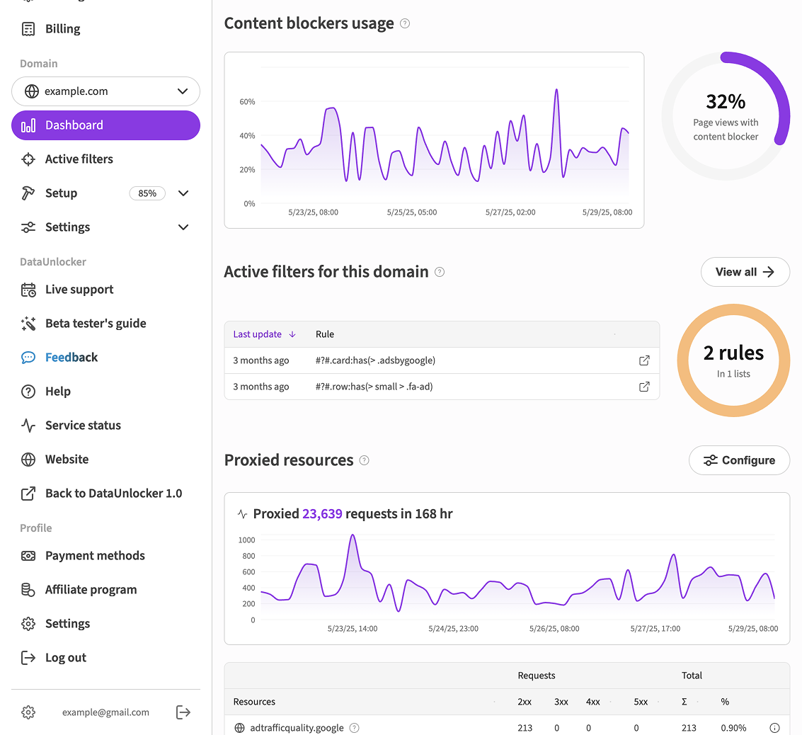 Hence, the only thing blockers can do is either block the entire web app or do nothing. In case blockers find a way to circumvent DataUnlocker, it is designed to roll out updates globally in seconds, without customer’s involvement. -