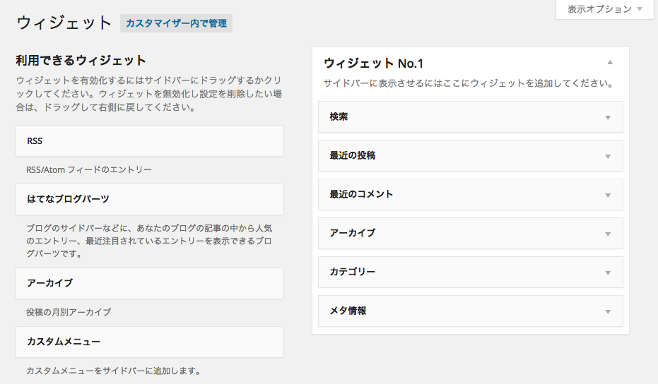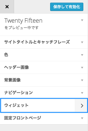 ウィジェットの項目を 表示させるには 何か 設定が 必要なのでしょうか?Twenty Fifteen の カスタマイザー